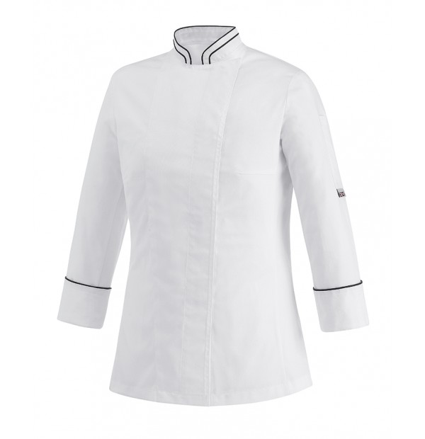 Egiptuse puuvillast trukkidega kokajakk naistele, mis on pikkade varrukatega. Stiili lisab krael ja varrukatel must kant.